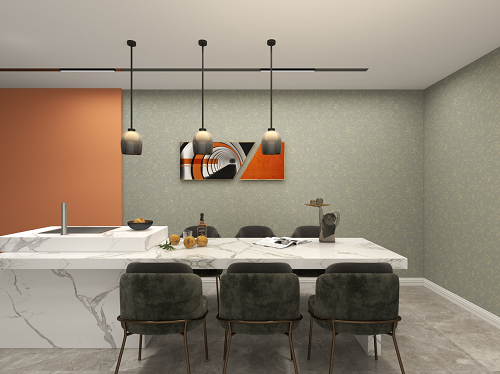 餐桌是人間煙火所在,也是關(guān)于家的美好記憶,質(zhì)感強(qiáng)烈的大理石餐桌,絲絨質(zhì)感的椅子,高雅美觀的同時(shí),讓用餐也充滿儀式感。