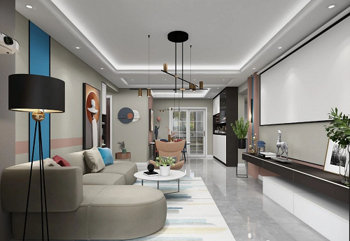 客廳的黑白灰設(shè)計(jì),很高級,如黑夜般深邃,如星空般神秘。藍(lán)、粉跳色的搭配,讓空間增些許活力,提升空間的深度,大氣不拘,同時也很有現(xiàn)代都市的時尚感。
