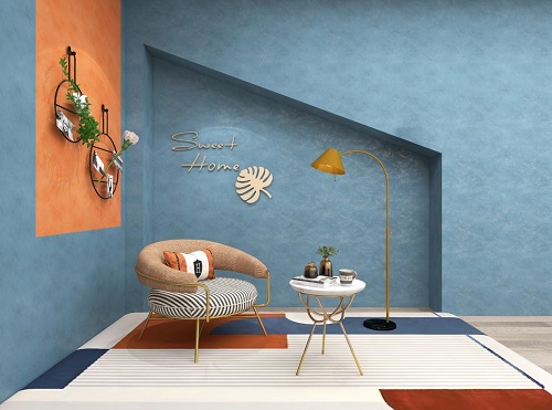 客廳背景墻,大膽的配色帶來(lái)了飄逸的跳躍感,亮藍(lán)色與亮橘色打破了空間的沉悶,米色的點(diǎn)綴使空間散發(fā)著暢快的氣息,完美展現(xiàn)極致個(gè)性。