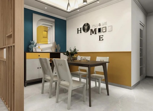 客餐廳緊靠在一起,用隔斷劃分兩個區(qū)域,增加兩個空間的隱私感。
